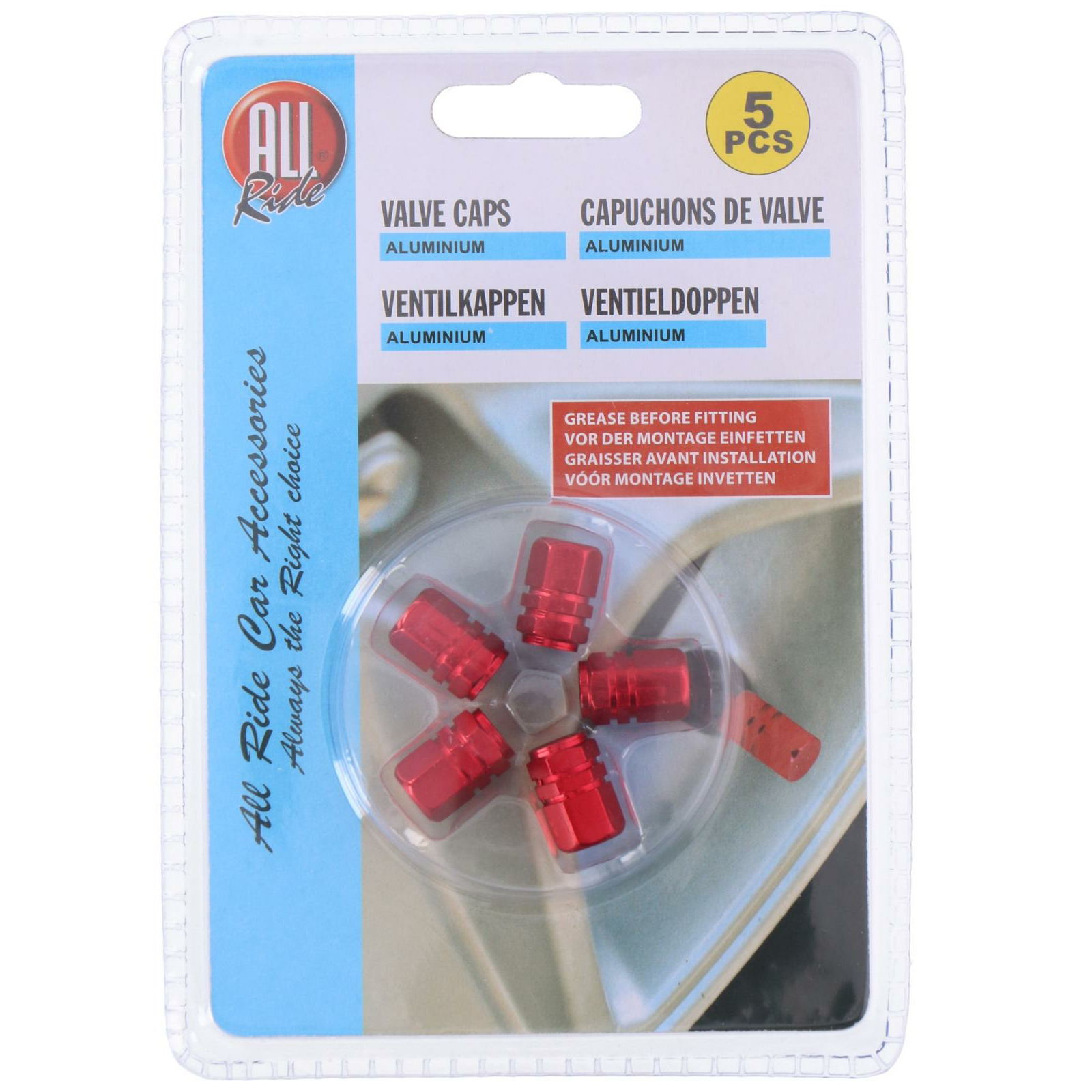 Autobanden ventieldoppen – 5 delig – rood – aluminium – Opvallende ventieldopjes